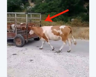 Vaca Corre Detrás De Su Ternero Intuyendo El Destino Que Tendrá
