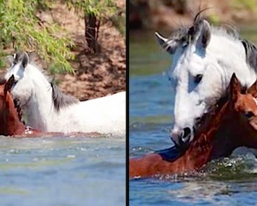 Una Potranca Esta Siendo Arrastrada Río Abajo, Pero Un Caballo Interviene Para Salvarla