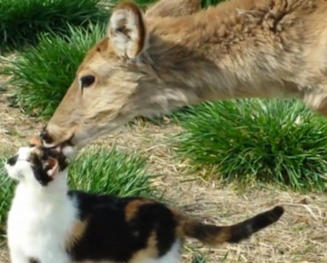 Ciervo Lava Tiernamente A Una Gatita Demostrando Una Bella Amistad